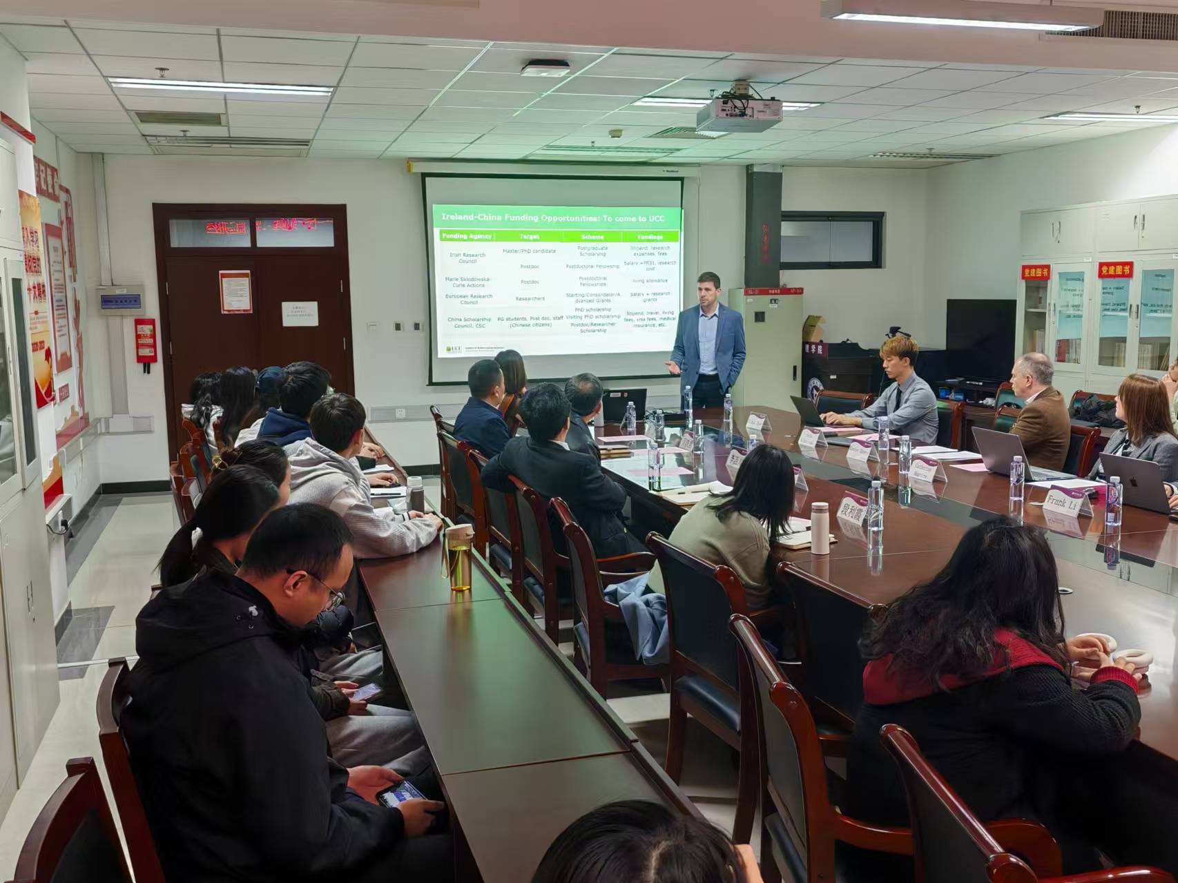 根据太阳集团tyc4633本科教育教学工作会部署安排,推进学院“三个1”教育国际化建设工作,在此会晤期间,科克大学代表团来访太阳集团tyc4633太阳集团tyc4633,开展了学术交流活动,就相关专业的硕士、博士联合培养等项目进行了深入的交流与讨论。统计学系主任Eric Wolsztynski通过讲座形式,为太阳集团tyc4633师生详细介绍了该校数学和统计学等专业的学科发展及交叉学科建设特色,并分享了两国在研究生交流和员工访学方面的资助项目情况。