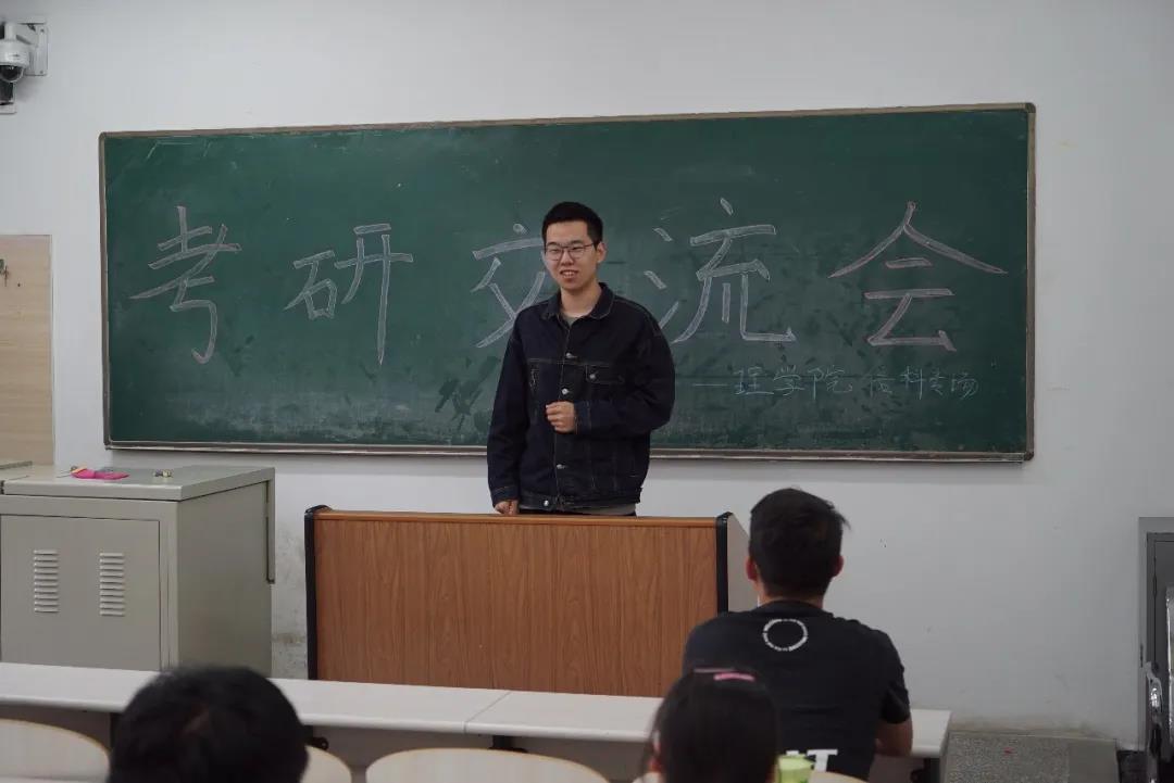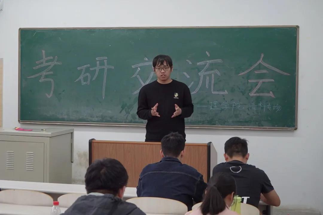 考取首都师范大学的殷硕、考取首都经济贸易大学的尚进以及考取本校研究生的岳世杰和张洪天等几位学长做了经验分享,他们分别从考研规划、信息调研准备工作、有关调剂方面的经验、考研过程中如何处理心理问题等多个角度讲述了个人的考研历程、经验。随后,同学们提出了许多考研复习过程中遇到的问题,学长们都给出了耐心细致的解答。