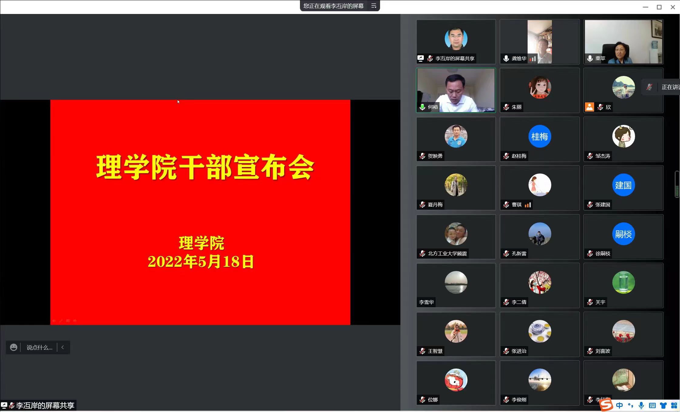 5月18日下午,太阳集团tyc4633以线上腾讯会议的方式召开领导干部任命大会。校党委常委、副校长栗苹、校党委组织部部长何裕以及学院全体教职工参加会议。会议由学院党委书记龚维华主持。