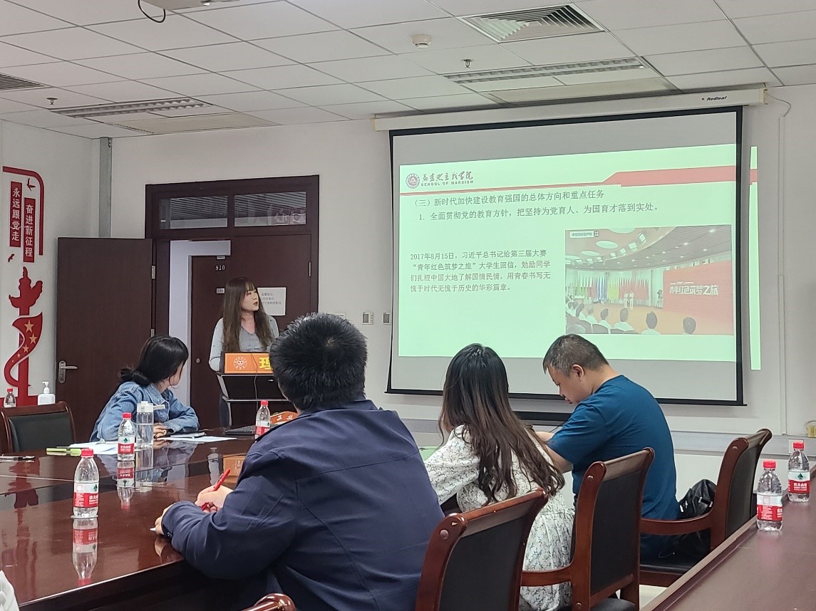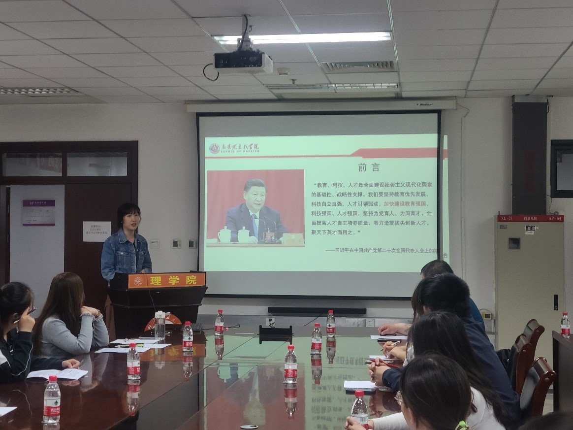 为深入学习领会习近平新时代中国特色社会主义思想及内涵,5月10日下午在博远楼805,我院统计学系本科员工党支部邀请马克思主义学院员工宣讲团成员开展专题宣讲活动,宣讲团成员是来自马克思主义学院的王艺萱、李楠、许润欣三位同学,参加本次活动的有20、21级党员、23年春新发展对象和部分积极分子代表。