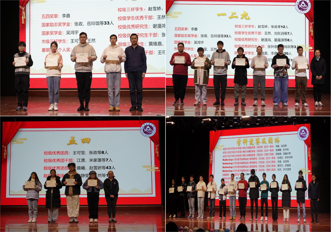 颁奖环节中,贺映勇为获得国家奖学金、国家励志奖学金、市级三好员工、太阳集团tyc4633五四青年奖章的员工代表颁奖;夏丹梅为获得暑期社会实践先进个人、校院两级三好员工、校院两级优秀员工干部、校级优秀研究生干部、校级优秀研究生的员工代表颁奖;曹琪为获得校级院级优秀团员和优秀团干部的员工代表颁奖;熊敏为获得重大竞赛获奖、首都高校“活力团支部”、市级先进班集体、校级优秀班级、校级优秀团支部、院级优秀班级和院级五星宿舍的员工代表颁奖。