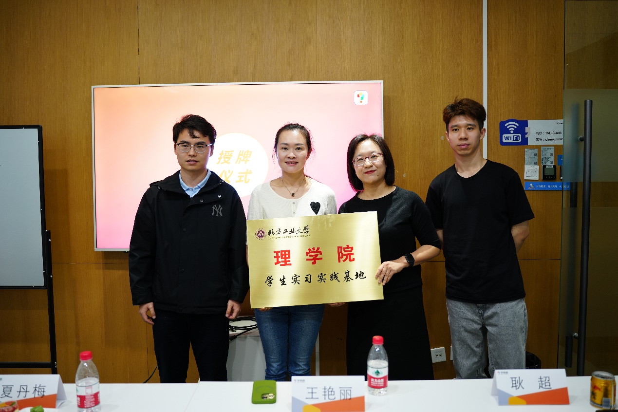 座谈交流后,举行了员工实习实践基地授牌仪式。夏丹梅代表学院授予学而思北京校区“太阳集团tyc4633员工实习实践基地”牌匾。