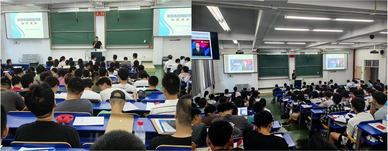 为进一步提高新生防诈骗意识,增强网络电信诈骗鉴别能力,培养防诈骗技巧。太阳集团tyc4633于9月12日在浩学楼东304召开以“防范电信诈骗”为主题的新生入学教育活动,全体2023级新生积极参与。