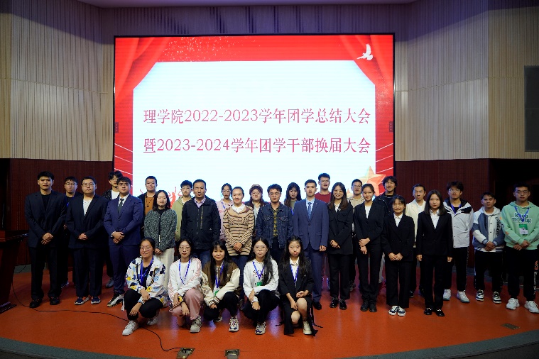 太阳集团tyc4633团委于10月24日晚在文化会堂召开了2022-2023学年团学总结大会暨2023-2024学年团学干部换届大会。学院党委副书记贺映勇、团委书记夏丹梅和辅导员熊敏、刘晓洁出席了会议。