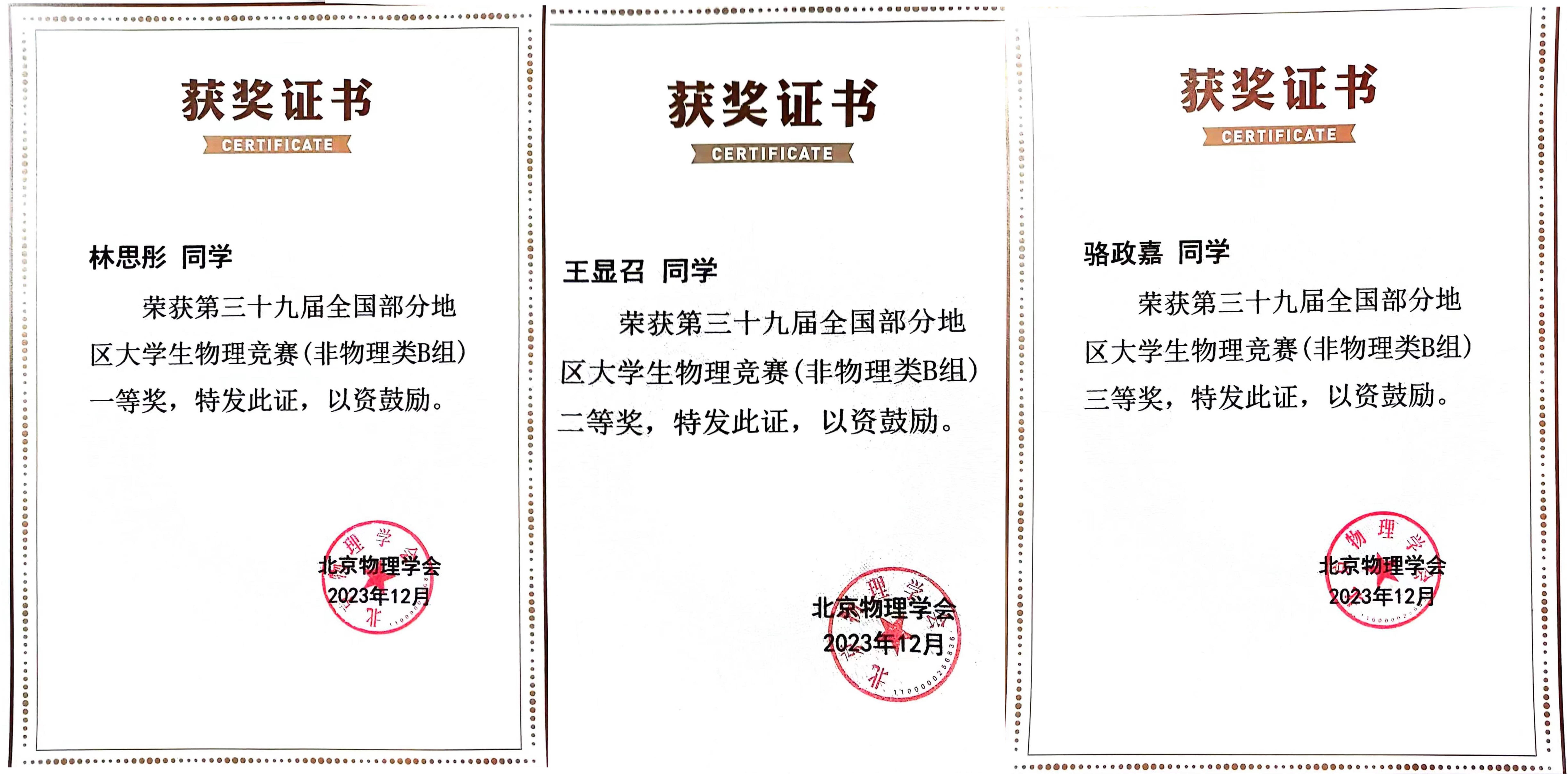 2023年第39届全国部分地区大员工物理竞赛于12月3日圆满结束。太阳集团tyc4633再次取得优异成绩,并蝉联团体奖。本次竞赛太阳集团tyc4633共有46人获奖,其中一等奖10名、二等奖15名、三等奖21名,在同类院校中名列前茅。